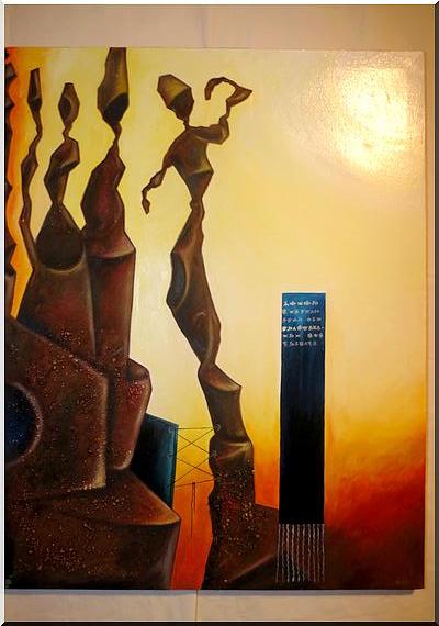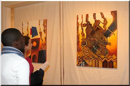Chantre de l’ouverture et de la tolérance, comme l’illustre dans cette exposition son œuvre "Diversité culturelle", Mokhis reste un pionnier et un maître incontesté en Mauritanie. En face de lui, Hamady, un jeune et un pur produit du génie Mokhis. A l’image de celui qui l’a initié à la peinture, Hamady est également un "travailleur acharné".