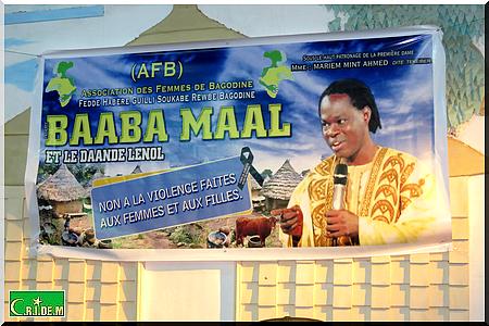 Sa voix est noyée par des orages d’applaudissement de la part du public ravi, ce soir-là , de se retrouver en face de son chantre. En Grande voix de l'Afrique et ambassadeur du Programme des Nations unies pour le développement (PNUD), Baba Maal exploite l’occasion pour sensibiliser l’opinion sur les enjeux des Objectifs du Millénaire pour le Développement (OMD) mais également sur les violences faites aux femmes et aux filles.