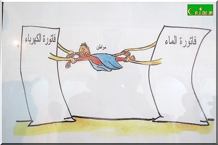 CultuRim - Un homme pendu, un autre qui se fait enlever les idées empoisonnées, une femme qui explique à ses enfants qu’il n’y a que leur père à manger, les scènes de ménage, les factures salées d’eau et d’électricité qui incitent au suicide, tout est là pour pousser à rire ou à sourire…Cette fois-ci, Khaled Moulay Idriss réinterprète la vie quotidienne d’un citoyen mauritanien, à travers une cinquantaine de caricatures.
