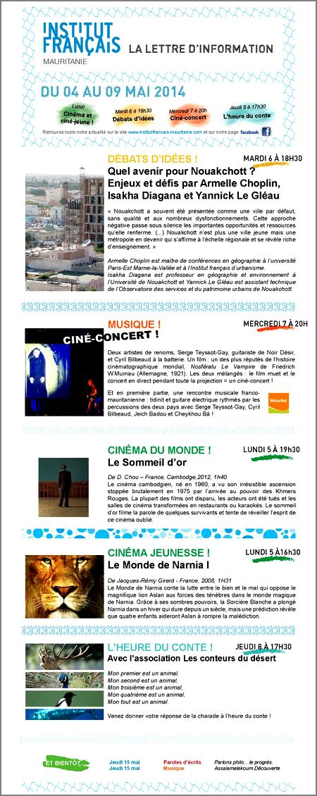 04-05-2014 18:20 - La Lettre d'information de l'IFM du 04 au 09 mai 2014