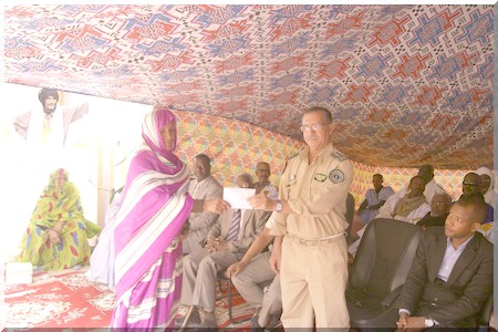 Le Colonel à la retraite Niang Abdoul Aziz par ailleurs Président de l’Association des Anciens Militaires et Retraités de l’Armée Nationale (AAMRAN), a, dans une brève allocution à l’adresse des invités rappelé que le 24/03/13, ici même était lancée l’inauguration de la première opération de financement de microprojets, à titre expérimental, au bénéfice de personnels démunis, notamment des veuves, orphelins de l’Association, programme de financement, concédé à titre de prêt sans intérêt, bénéficiait à six (6) coopératives tant de leurs bureaux de Nouakchott que de l’intérieur.