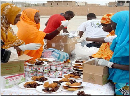 Bocar Baila Bâ - De nombreuses familles et des jeunes démunis habitant Sebkha se sont retrouvés vendredi 10 juillet 2015 au terrain de Basra pour une rupture de jeûne en groupe. Ils étaient réunis à l'appel de l'association Houb Al watan, en partenariat avec l'ONG Besma Emel, Eveil et l'ONG canadienne de bienfaisance.