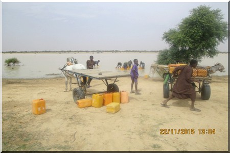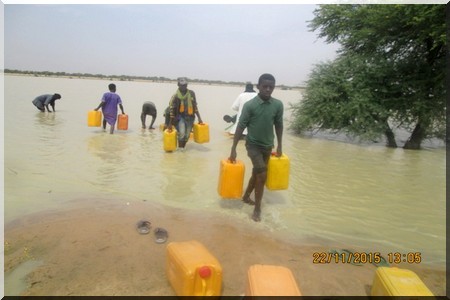 Et Dieu a apporté un cinglant démenti à ces allégations avec cette crue débordante partout comme vous pouvez le constatez ! C’est dans cette cuvette que j’ai été arrêté et jeté à la prison d’Aleg pendant dix jours avec quatre autres paysans par la gendarmerie au mois d’octobre dernier au seul motif que nous refusons l’accaparement de nos terres.