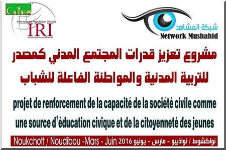 Network Mushahid, sur financement de l’ International Republican Institute (IRI), a lancé son projet de renforcement des capacités de la société civile ce samedi 26 mars à La nouvelle maison des jeunes, à Nouakchott.
