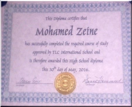 01-06-2016 16:33 - Mohamed Zein, premier et unique gradué au bac à TLC International
