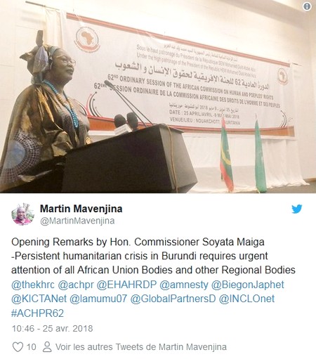 La présidente de la Commission africaine des droits de l’homme et des peuples, la Malienne Soyata Maiga, avait qualifié d’encourageants les efforts de la Mauritanie en matière de promotion des droits humains. Une appréciation un peu hâtive alors que des délégués des ONG mauritaniennes étaient empêchées d’accéder au centre international des conférences.