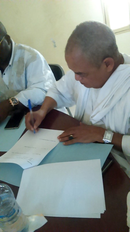 CCME - Le mardi, 15 mai 2018, a eu lieu à Rosso, région du Trarza, la signature d’un mémorandum entre le Collectif des Cadres Mauritaniens Expatriés (CCME) et la Mairie de Rosso, l’Association des parents d’élèves, l’Inspection Départementale de l’Eduction Nationale (IDEN), la Direction de l’Ecole I de Rosso, en présence du Conseiller du Wali, du Hakem de Rosso, des membres de la délégation du CCME.