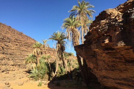 L’arrivée à Tergit me procure encore plus d’émotion qu’à l’oasis de Maheireth. Nous entrons brutalement dans une forêt de palmier et la fraicheur des arbres s’empare de nous. Des petits ruisseaux serpentent entre ces arbres et le contraste est saisissant avec le désert aride que l’on vient de traverser. Je crois que nous sommes bien au paradis des nomades.