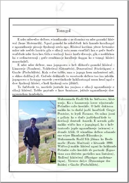 Il vient quatre ans après le premier livre de l’auteur qui s’attelait à la “Pularisation” des mathématiques et dans lequel différentes branches des mathématiques supérieures ont été abordées en Pulaar, servant ainsi de premier ouvrage de mathématiques supérieures écrit dans cette langue africaine transfrontalière.