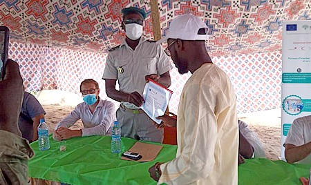 Pour la Délégation de l’Union Européenne, par la voix du Chargé de Programme – Fonds fiduciaire d'urgence pour l'Afrique Section Coopération, Mr Jorge VALIENTE a, à son tour félicité les jeunes pour leur courage et détermination pour l’accomplissement de leur cycle de formation malgré la situation sanitaire liés à la propagation de la COVID 19.