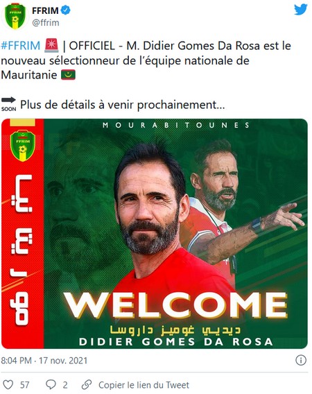 Désormais à la tête de la sélection mauritanienne, le technicien de 52 ans aidera les Mourabitounes à avoir une identité de jeu. Didier Gomes pourrait apporter de l’ordre, la discipline tactique, l’intensité en milieu du terrain et la progression rapide vers l’attaque à la sélection Mauritanienne.