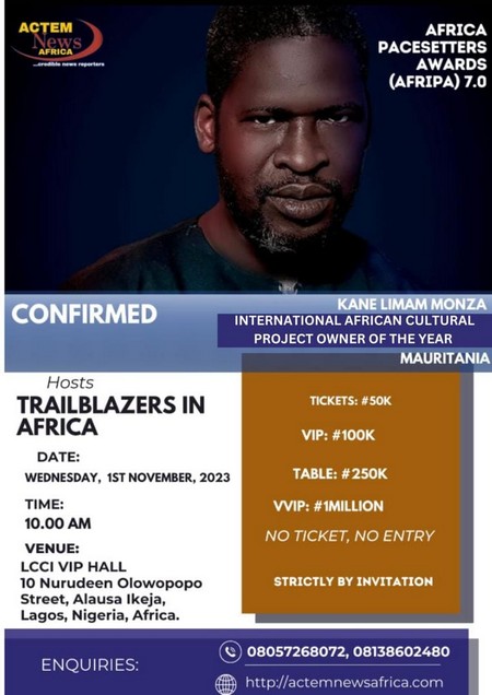 EN BREF | #Cridem - L'artiste mauritanien Kane Limam dit Monza vient d'être nominé au Trail blazers In Africa et au Global Impact Awards comme porteur de projets culturels africain à l’international de l’année, a appris Cridem.