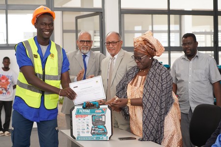 Le 7 décembre 2023, 58 jeunes diplômés dans les filières Energies renouvelables, Electricité en bâtiment, Froid et climatisation, Menuiserie aluminium, et Plomberie générale ont ainsi reçu leur sésame à Nouakchott des mains de M.Mohamed Salem Boukhreiss, Secrétaire général du ministère de l’Emploi et de la Formation professionnelle au cours d’une émouvante cérémonie qui s’est déroulée en la présence remarquée de Messieurs le Maire de Ryad et le Conseiller du Wali de Nouakchott Sud.