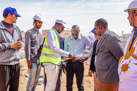 Son Excellence le Ministre était accompagné du Conseiller chargé de la communication, Monsieur Cheikh Ahmed Ould Eleiwa, du Directeur des Bâtiments et des Équipements Publics, Monsieur Brahim Ould Sghair, du Directeur Général de l’Agence de Développement Urbain, Monsieur Sidi Mohamed Ould Bouna, du Directeur technique de l’Agence, Monsieur Mohameden Ould Ahmed Salem, et des ingénieurs responsables des travaux.